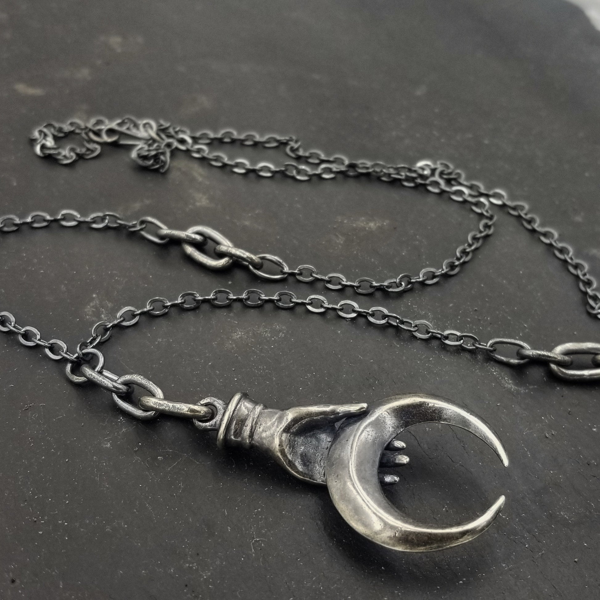 The Alchemia necklace features a sterling silver 26” chain hung with a solid sterling silver 3” pendant