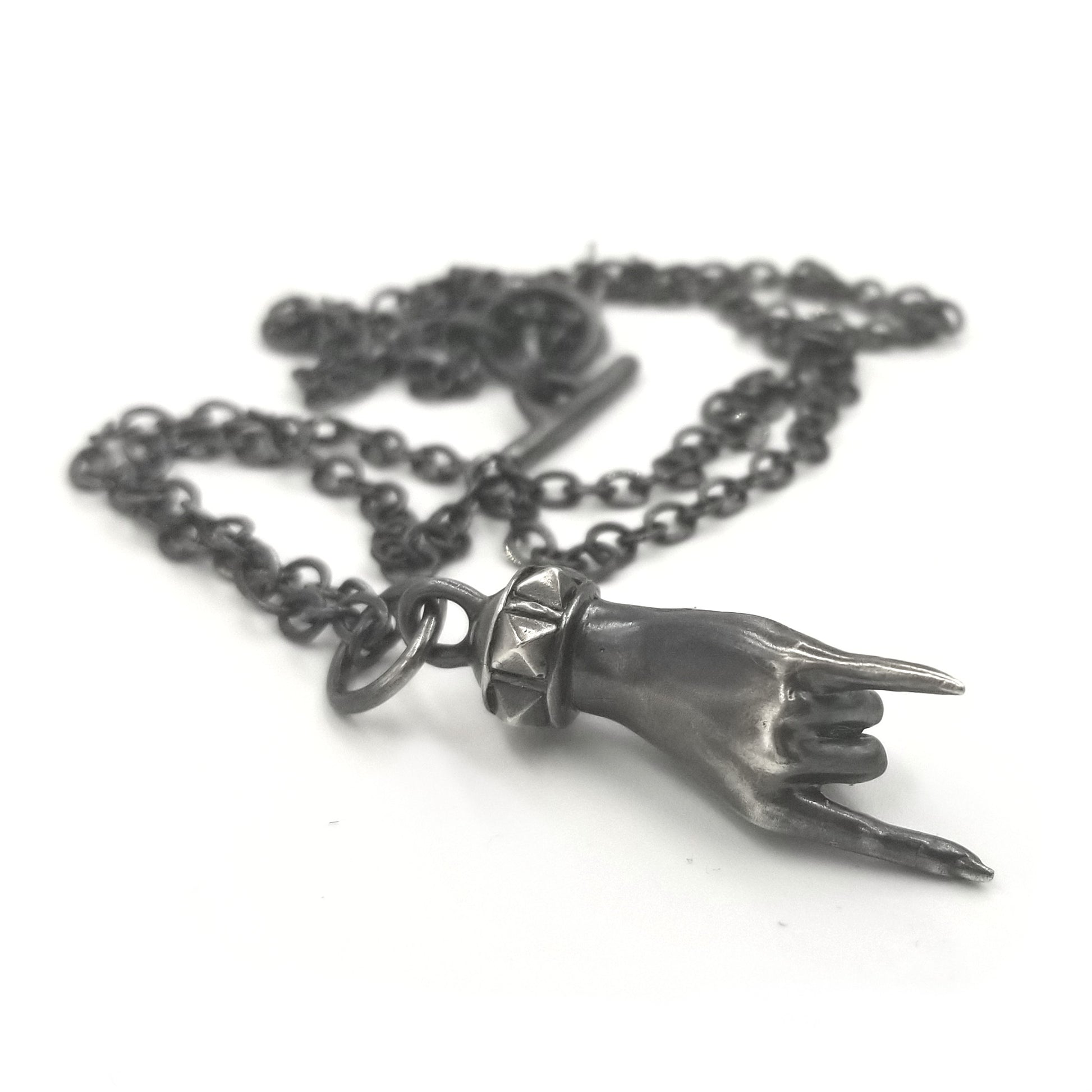 A modern take on the traditional Mano Cornuda design.